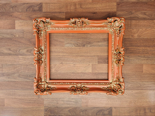16x20 Orange Golden Picture Frame, Fancy Baroque photo Frame, Colorful Style, Ornate