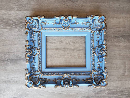 8x10 Vintage Blue Picture Frame, Baroque Art Ornate Frame, Cottage Chic Photo Frame